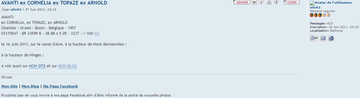 Surtout quand c'est un magnifique bateau comme celui-là ! Du coup, pour illustrer à nouveau ce sujet, voici deux photos prises aujourd'hui même à Berry-au-Bac par Christian Brasseur, où l'AVANTI attend de charger pour Lieshout, en plus c'est le premier voyage du nouveau propriétaire :