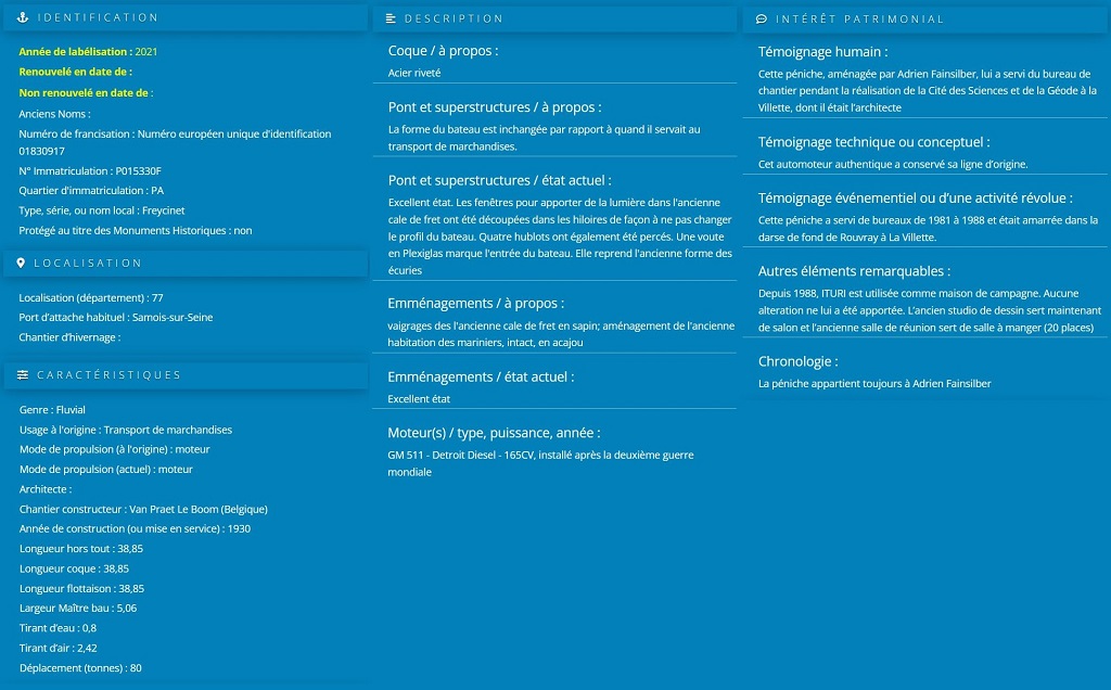 ITURI - P15330F - a été labellisé PATRIMOINE MARITIME ET FLUVIAL en 2021.