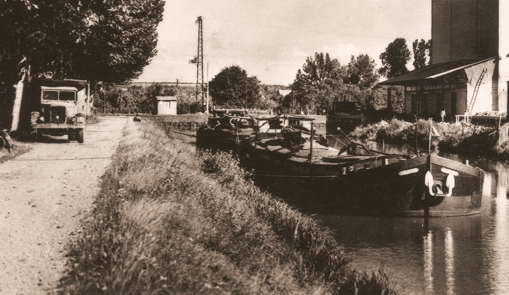à Vitry-le-François, le bateau au premier plan s'appelle JENNY, et on voit également un tracteur Latil :