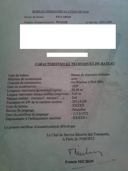 Document du EX-CARGO que j'ai remonté du chantier d'Achères à son emplacement à Alfortville le 14/12/2012