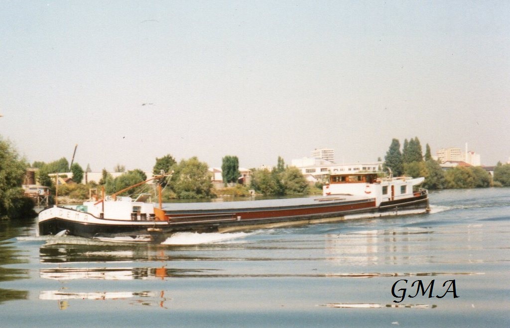 A digue, le NAJA. Ces deux bateaux sont sûrement de la même famille : pour le GEMA, l'IVR 1989 indique "R. Vlieghe", a ce qu'à écrit Orvanne ci-dessus, et pour le NAJA, sur une carte postale de Paris dans son sujet, on peut lire "G. Vlieghe" au cul du bateau.