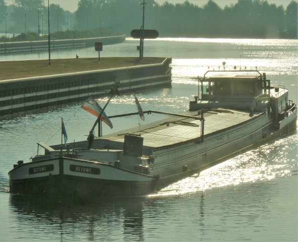 Betuwe , 49,48 x 5,04 x 2,40 , 453 ton , Bouwjaar 1963 , Werf Van Kerckhove in Merelbeke ( Belgie ) , 277 pk Deutz en 120 pk DAF boegschroef , ex Linquenda , ex Rodeur , ex Marianne , ex Onderneming , eigenaar A.Buitjes in Tiel , ENI 02103747