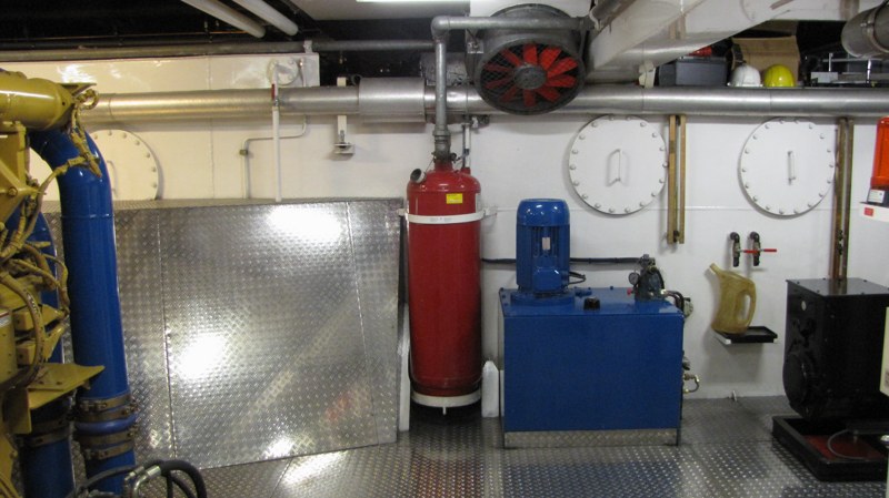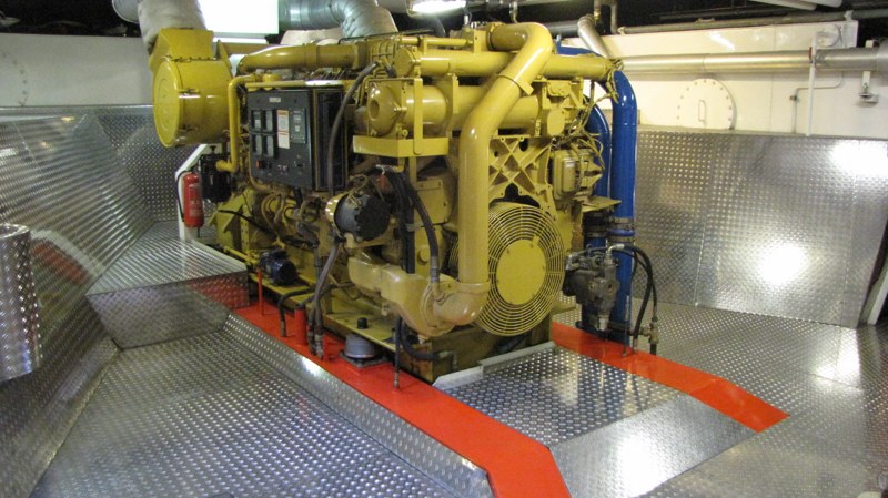 et continuons la visite par la salle des machimes ou se trouve un petit moteur de 1500 CV CAT 3512 le meme que le BORNEO mais avec 4 cylindres de plus