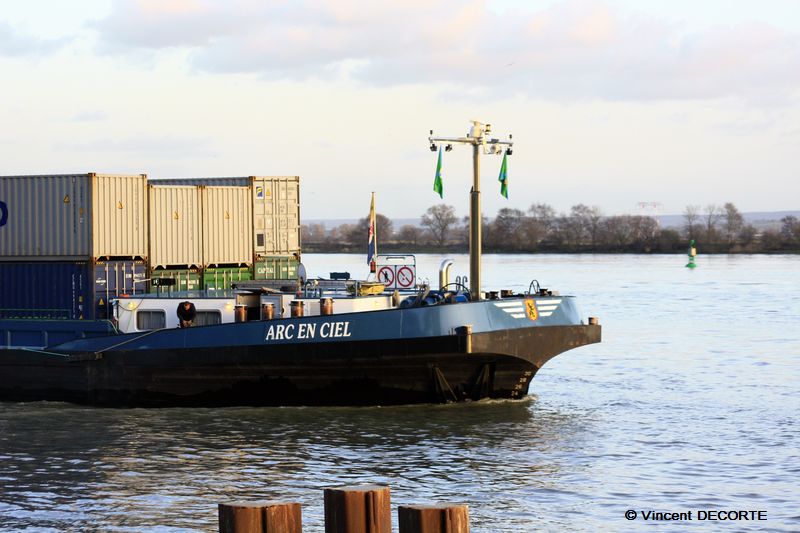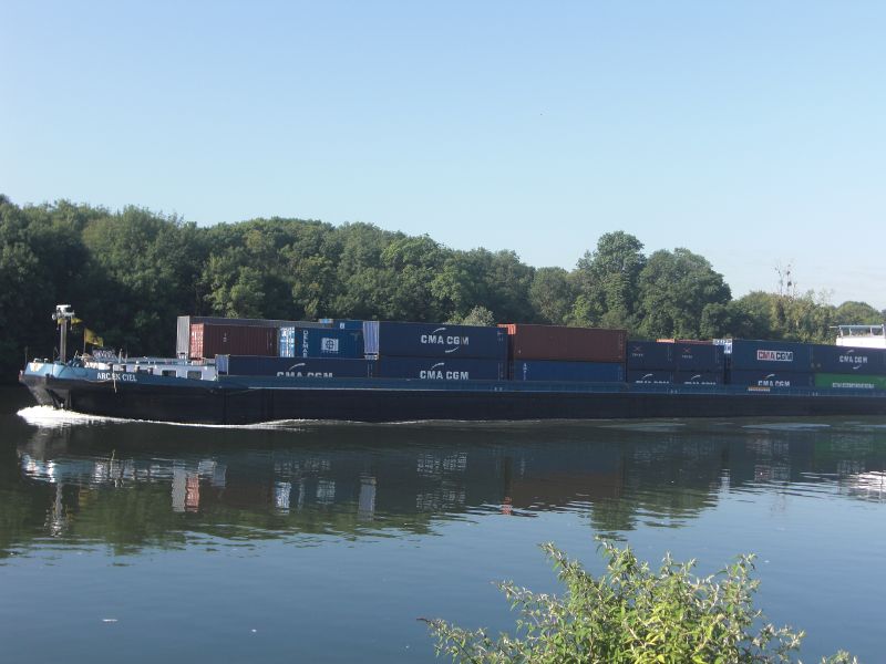 je vous joins deux photos de l ARC EN CIEL montant a conflans avec une barge,impressionnant!!!