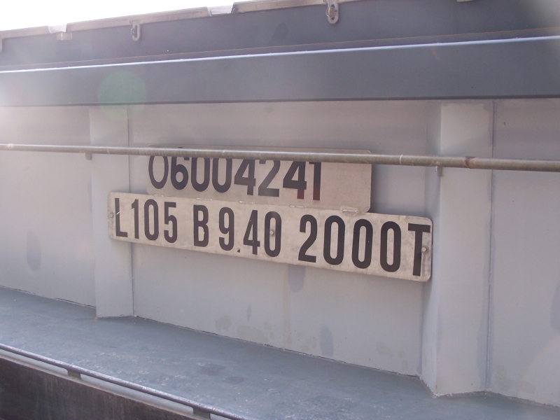 105m * 9,40m soit un GT de 2000 Tonnes !