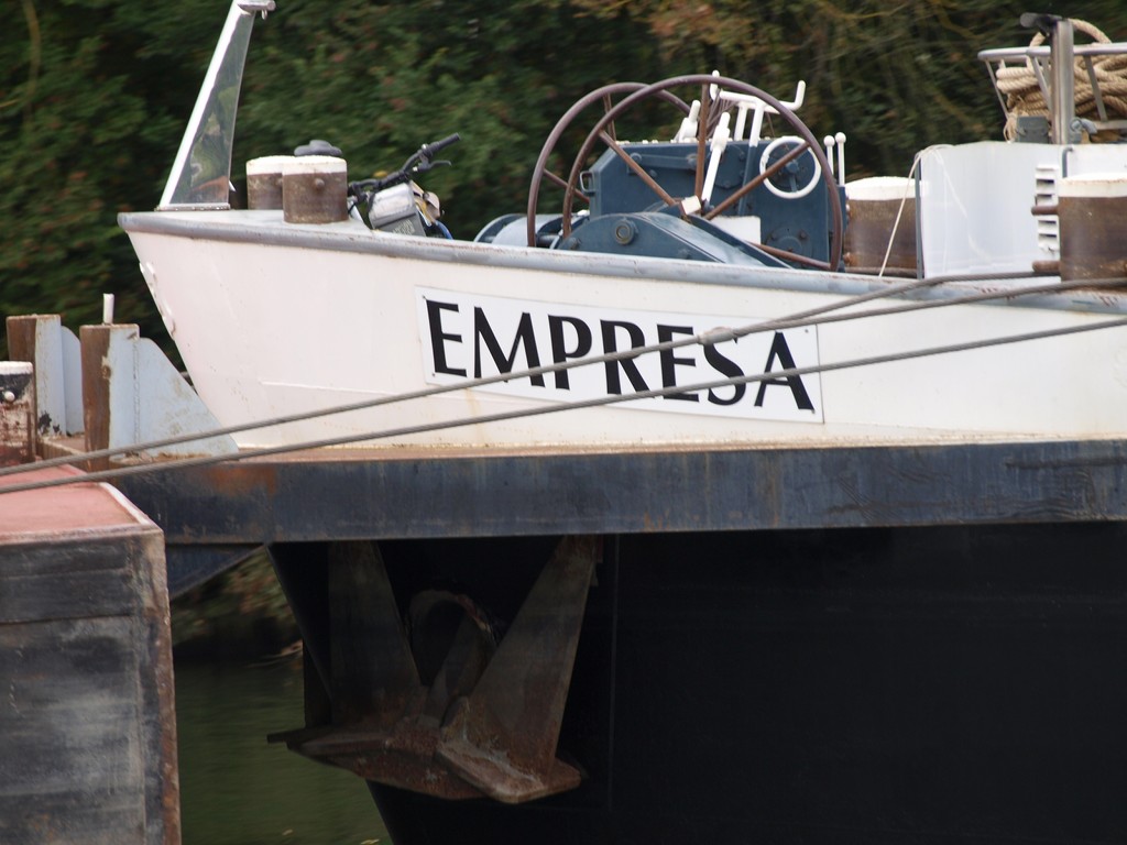 voici une nouvelle vue de ce bateau de passage ce matin à St Mammès, en prime une vue plongeante sur le système de brêlage.