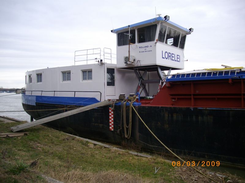 Le Lorelei: ex Citerna 2 (sauf erreur) a Maronat Marcel,en hydro.Vendu a William Englander.Et la premiere transformation et premier "hybride" sur le Rhone. Juste l'arriere d'origine et tout le restedu neuf en hydro.Pendant qq annees.Puis vendu a ? et retransformation en divers.Les moteurs ont aussi etaient changes,mais je ne me souviens plus quand et par qui. Ce bateau est a St Jean (pk 215) depuis 2008,et revendu,d'ailleurs l'on voit bien le nom du nouveau Patron.Avant il etait tout rouge, maintenant il est bleu.Je ne connais pas les problemes s'il y en a,car depuis aout 2008,il est toujours a la meme place.