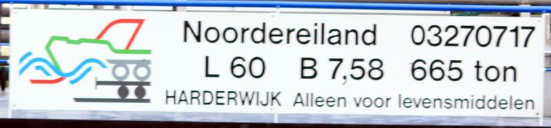 Noordereiland , 60,52 x 7,58 x 2,62 , 665 ton , Bouwjaar 1966 , Werf Sneker Scheepsbouw Unie in Sneek ( Nederland ) , 570 pk Mitsubishi en 120 pk Scania kopschroef , ex Hortense Dorine , ex Factotum , ex 4 x Viator , eigenaar Vof. Noordereiland in Zwijndrecht , ENI 03270717