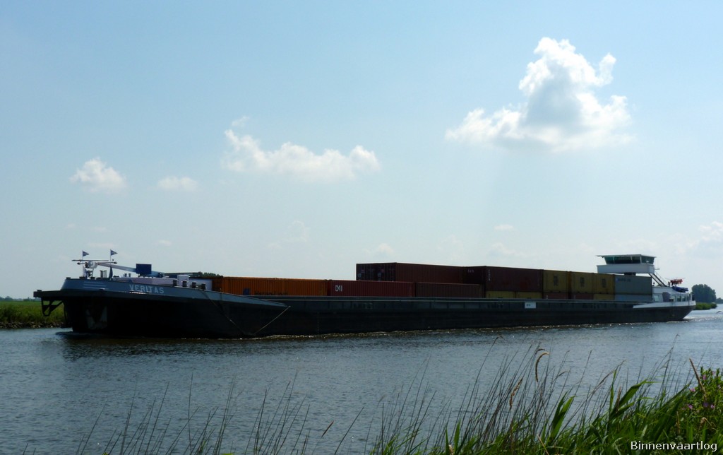 Veritas , 109,93 x 11,40 x 3,43 , 3010 ton , Bouwjaar 1986 , Werf Alblas in hendrik Ido Ambacht ( Nederland ) en Dolderman in Dordrecht ( Nederland ) , 2028 pk Caterpillar en 480 pk DAF Veth-Jet boegschroef , ex St.Antonius , ex Victor , ex Rean-L , eigenaar Vof Veritas in Harderwijk , ENI 02317734
