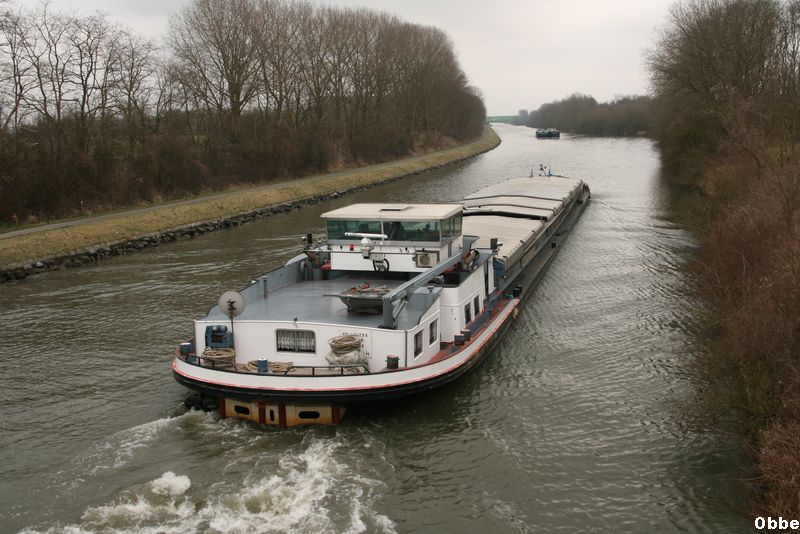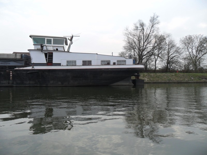 Amarré à l'amont de l'ascenseur de Strépy-Thieu, mars 2014 :