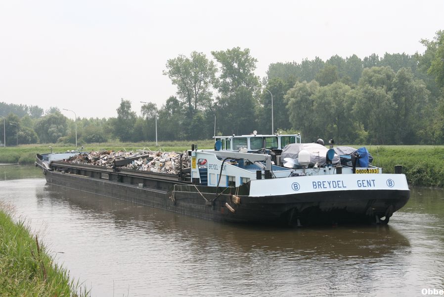 Breydel , 80,00 x 9,50 x 3,02 , 1538 ton , Bouwjaar 1973 , Werf Langerbrugge in Gent ( Belgie ) , 1200 pk ABC , eigenaar J Deroo in Gent , ENI 06000393