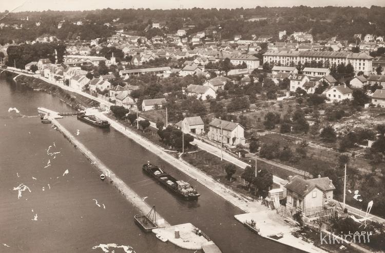 sur une vue aérienne de l'écluse de Champagne-sur-Seine, sans les cuves à ciment :