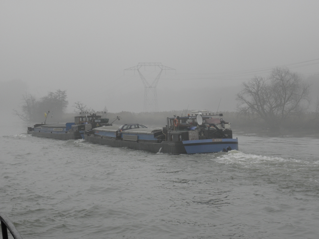 Quand on parle du loup, on voit sa queue.La barge arrive et penetre dans l'ecluse de Kampenhout .Mais cette fois la barge Mexique suit son pousseur Mexico Toujours un exercice de style. Les ecluses du canal de 52x 7 m. ne permettent pas le passage de 2 freycinets en meme temps.