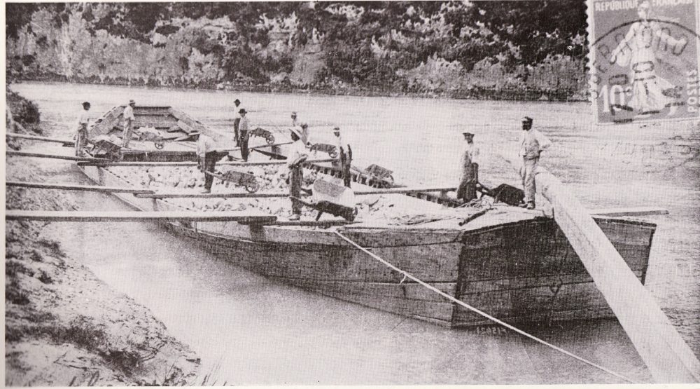 Salut Une savoyarde chargé de pierre pour Lyon, à Seyssel sur le haut Rhône.