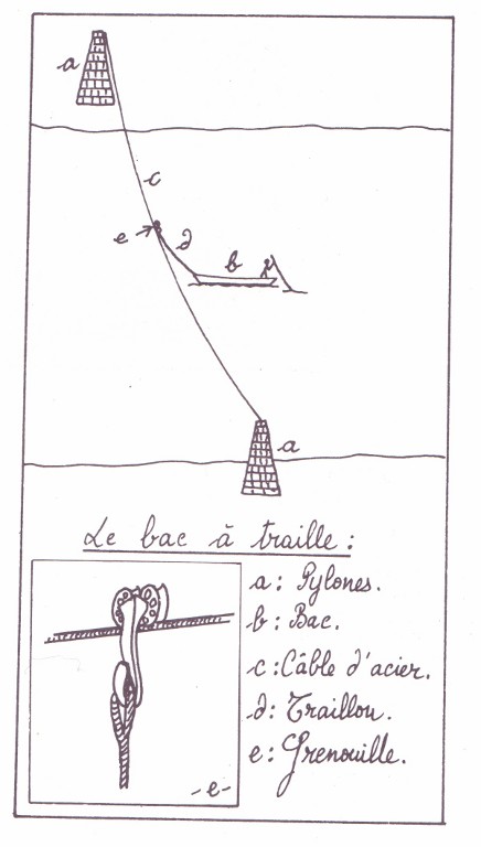 Extrait du bulletin n° 102 des Amis du vieil Arles daté de mars 1999 "LE MARINIER DU RHÔNE", par Dominique Morra, voici la liste des 20 bacs à traille qui furent en service sur le Rhône. En 1973/74, du haut du rocher des Doms à Avignon, on pouvait encore en voir un, juste en amont du fameux pont Saint Bénézet. Remplacé maintenant, et seulement en été par un "ferry-boite" !..