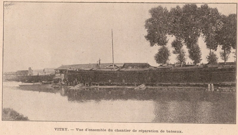Chantier de Vitry - Le chantier de Vitry, qui a d'abord servi à remonter les remorqueurs provenant de Verdun, a été aménagé ensuite pour permettre la réparation des péniches. Ce chantier est exploité en régie par l'Office. Une annexe a été créée à Sermaize"