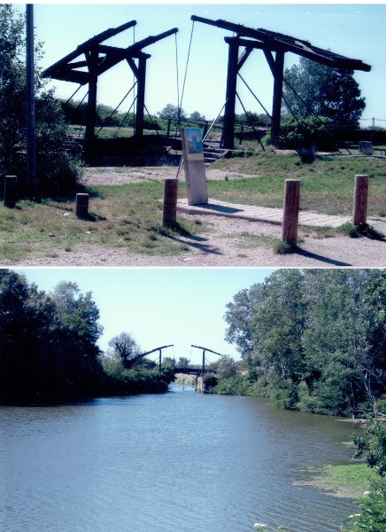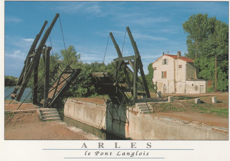 La légende de la CP est fausse. Ce pont, sur une écluse, est celui de Montcalde, à la sortie sud d'Arles. Le pont de l'Anglois n'était pas sur une écluse (Van Gogh ne l'aurait pas supprimée pour se simplifier la tache), mais presque au bout du canal côté Rhône, sur la partie du canal qui a été déviée vers l'aval pour construire l'actuelle grande écluse. Bref, ce pont de l'Anglois n'existe plus. Voyez mes explications sur mon site : http://projetbabel.org/fluvial/rica_arles-bouc-canal.htm