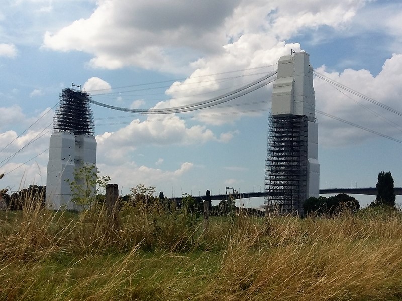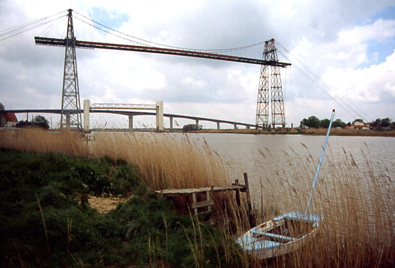 C'est couillon, en 88 je suis passé dans le coin : y'avait le pont à transbordeur (pas encore réhabilité), le pont levant en service et déjà le nouveau viaduc en construction. J'aurais pu faire une photo des 3 franchissements ensemble (ne manquait que le bac des tout-débuts), et je ne l'ai pas faite, ignorant que j'étais de la destruction programmée du pont levant.
