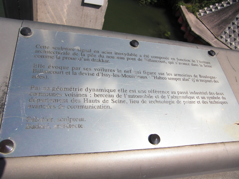 Je suis donc sur le pont de Billancourt, et une grosse sculpture en aluminium pointe son nez....