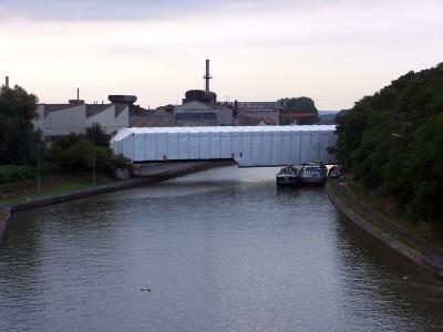 Etablissement d'un zone de confinement sur le pont SNCF d'Arques avant les operations de sablages ...