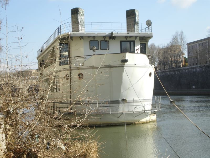 L'on voit des enrochements à fleur d'eau un peu partout, dans la traversée de Rome sur le Tibre.