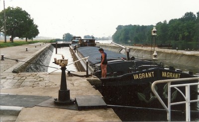 EN 1960 janvier le germaine a chargé d'aval l'ecluse par camions pour chalon s saone