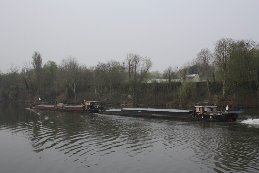 Je prends la voiture, je file le long du chemin du halage, et je rencontre un convoi amarre.