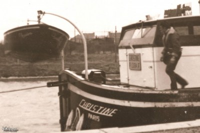 La devise, CHRISTINE, et le port d'attache, PARIS, sont bien lisibles à l'arrière ; pour ce qui est du matricule, qui figure sur une plaque derrière la marquise, j'espère que je déchiffre bien : P13194F.