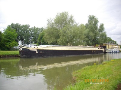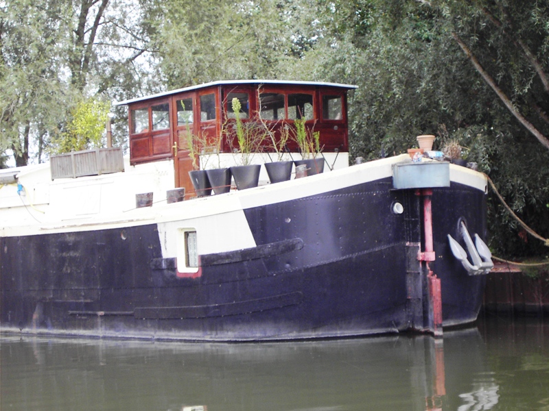Quand on y est passe en bateau mi juillet, il etait amarre pres du chantier. Week-end dernier nous l'avons retrouve bien en aval apres les ecluses a la campagne.