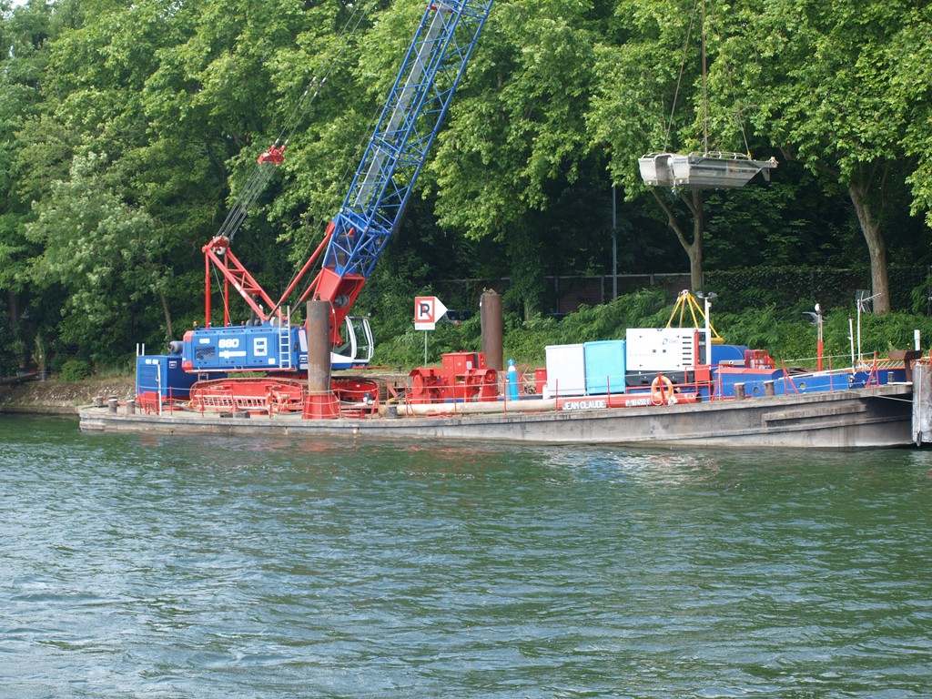 Flotte EMCC En travaux à Méricourt le 26/02/2013 Enlèvement d'une passerelle endommagée sur le barrage