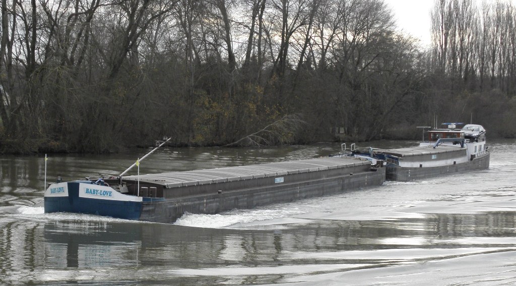 Le baby love est bien le sermaize qui est reste longtempt sur le chantier ,il aurait ete mis a l eau en 76 pour l enmener a villeneuve le roy pour couper l arriere ainsi que la cabine,le rallonger a 45m en lui faisant un cul de barge,il aurait ete raccourci par la suite a 43m pour passer le canal du nord avec un bateau rallonge . C est l ancien deriveur