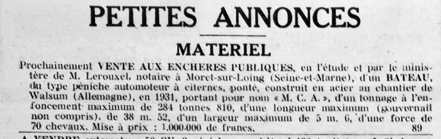 Je ne sais si Gaetan regarde encore vv, mais voici une annonce de sa mise en vente l e 15 janvier 1944