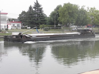 - mai 2023, voûte de Braye sur le canal d'Abbécourt : l'ancienne marquise, avec de l'orge de Château-Porcien (08) pour Dunkerque