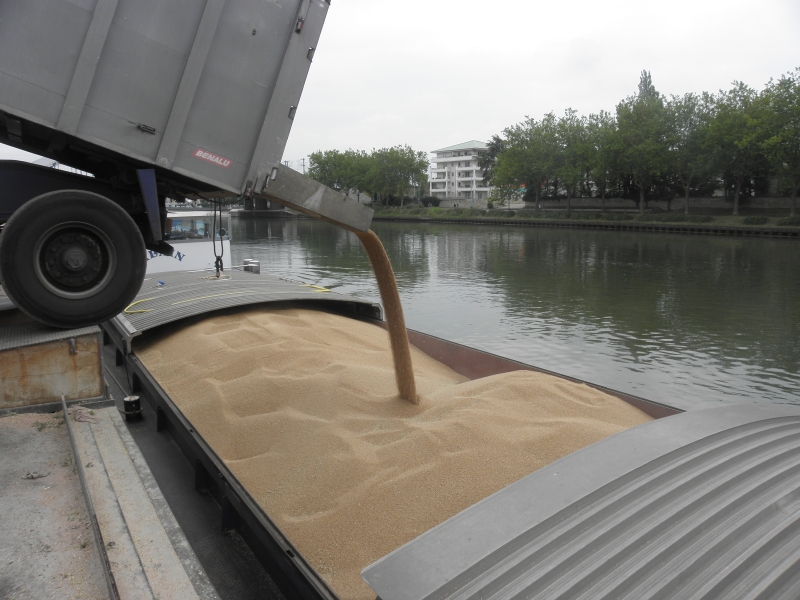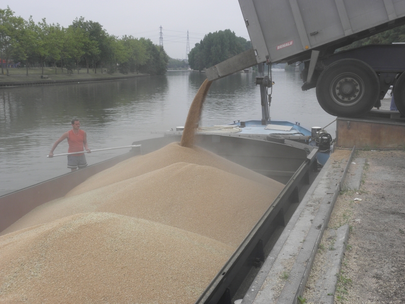 Et voila.. le chargement est termine, Freddy peut prendre la route... euh... l'eau pour se rendre a Rouen avec les 900 Tonnes de ble....