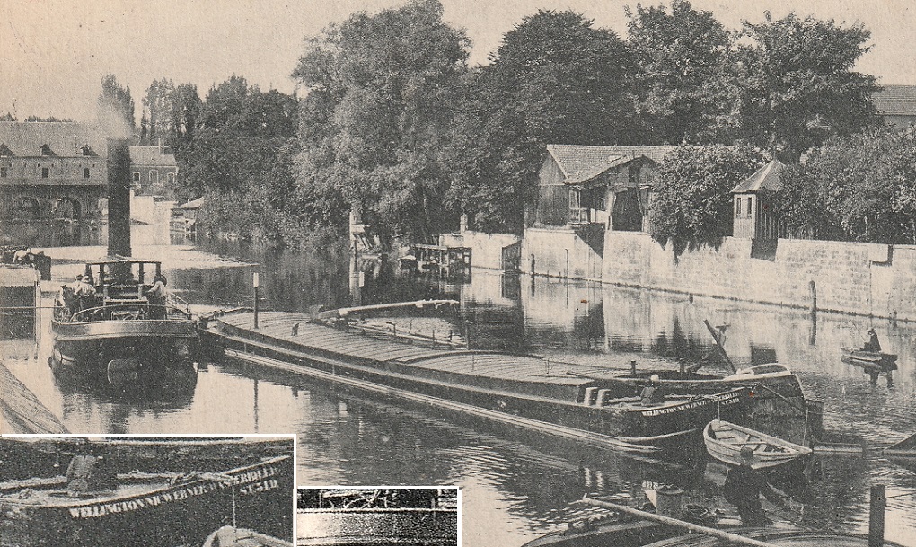 Cependant la péniche semble s'appeler WELLINGTON (ST 518? SI51B?) - peut-être que cela indique qu'elle est belge plutôt que française!