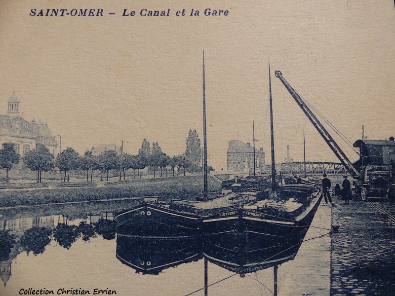 Un petit nouveau pour le forum nommé LE PHARE, carte des années 30 prise à St Omer. A sa gauche un autre bateau en fer qui pour moi ressemble à un Jabon