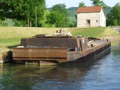 Je n'ai aucune idée où poster ce sujet. Ponton de 20m, fabrication sur mesure? La cabine m'a intrigué et m'a fait poster ici. Seules indices la devise, soudé à la main sur les fargues, et des initiales A.A., soudées de la même façon sur un bollard.