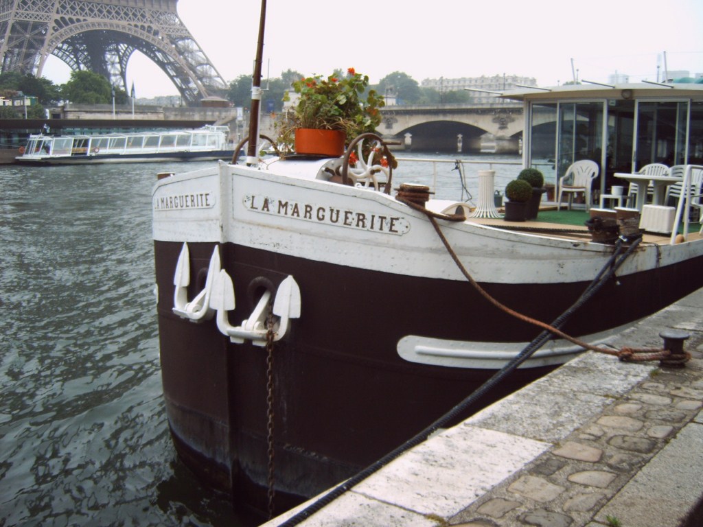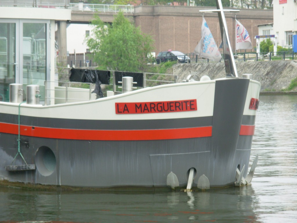 Ce bateau est un bateau logement parisien de construction neuve et qui est stationné au même emplacement que l'ancien "MARGUERITE", un cul de poule avec un pont supérieur aménagé avec un design très proche de celui ci.