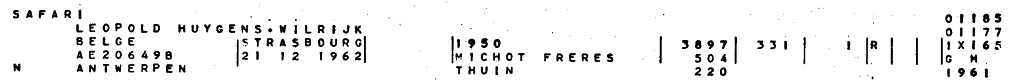 -de 1961 à 1999 SAFARI AE20594B à L.Huygens de Wiljryck, en 66 BR8118B, en 1975 BR16993B, en 1986 BR25193B, en 1996 BR34206B