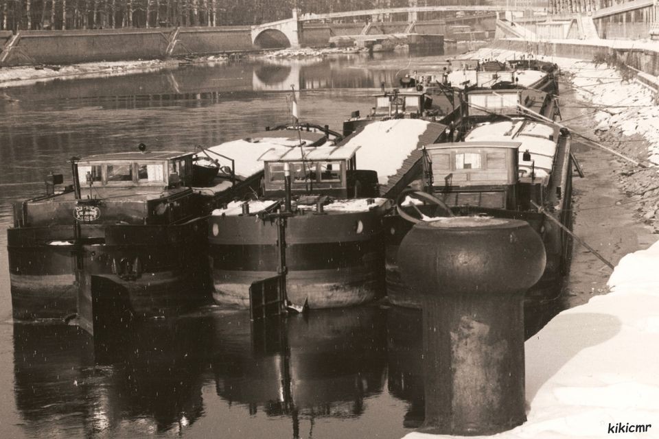 J'en sais plus, maintenant, sur cette photo, grâce à José Fernez dans le groupe Facebook Vagus-Vagrant : c'était pendant l'hiver 1963, le Strasbourg au milieu, c'est le DÉFIANCE, et à digue, c'est un Thourotte, le THEOS.