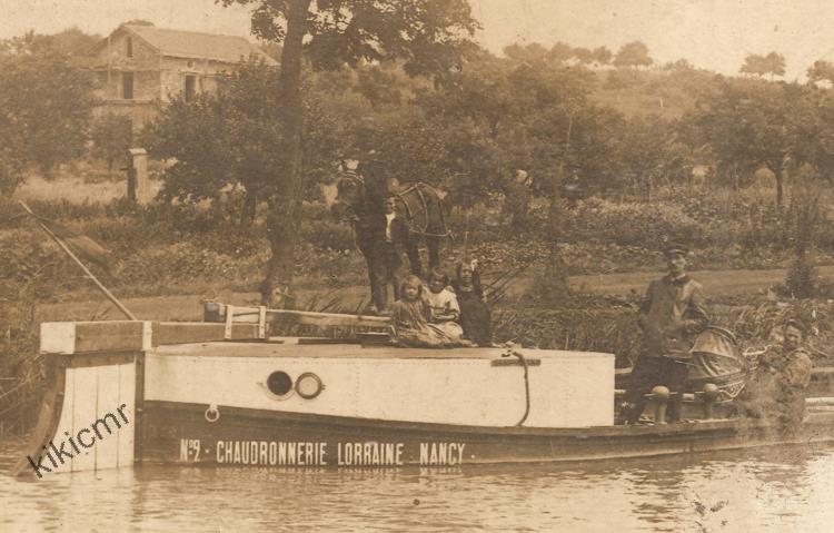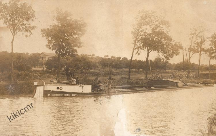 Et donc, vous voyez le bateau devant la grue, c'est exactement le même que le N°2 à la CHAUDRONNERIE LORRAINE de NANCY ! Y a une inscription au cul, très difficilement lisible, je ne pense pas que ce soit le N°2 comme sur la carte-photo, j'arrive presque à déchiffrer "N°1", mais pas de façon assez certaine pour lui créer son sujet à lui tout seul. Remarquez que la bateau de la carte-photo (le N°2) a une écurie au milieu, celui de la carte postale n'en a pas. Mais les deux photos n'ont pas été faites le même jour...