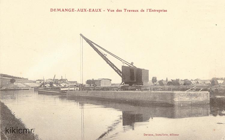 Elle a été écrite en février 1915, à Demange-aux-Eaux, par un poilu, Louis, qui donne de ses nouvelles à sa "bien chère Eulalie" (il va bien). Carte postale très intéressante... je pense que le lieu exact, c'est au-dessus de l'écluse 1, à gauche le canal continue vers la tête Ouest du souterrain de Mauvages, et à droite, devant les bateaux, au niveau de la passerelle, c'est le départ de l'embranchement d'Houdelaincourt. A confirmer. La grue sur le ponton, je suis presque certain qu'elle est là pour les travaux qui ont eu lieu à la voûte, entre 1910 et 1922 (voir ICI).