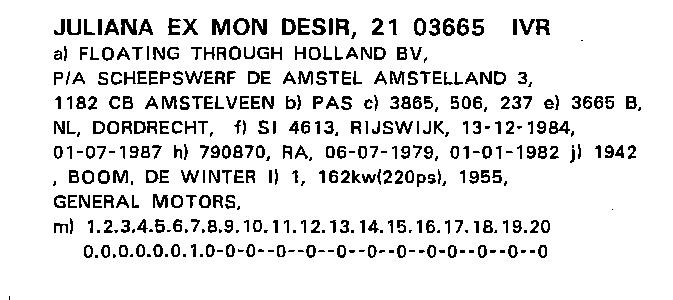 MIRABELLE ex JULIANA ex MON DESIR ex RODEUR ex BERT ex CLEMENTINE