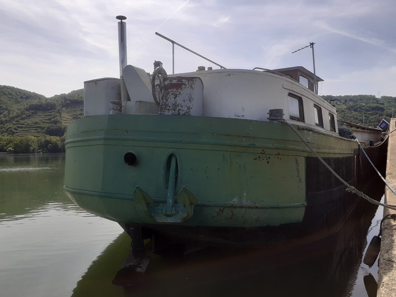 Ce bateau, est je pense devenu la "ventouse" de St Vallier. Tout d'abord en amont du pont en rive gauche accosté au ponton réservé à la plaisance et éventuellement au passager local (le canot) Actuellement, en zone portuaire (au port où l'on n'effectué pas où rarement des opérations de chargement ou déchargement. Photos de Baron