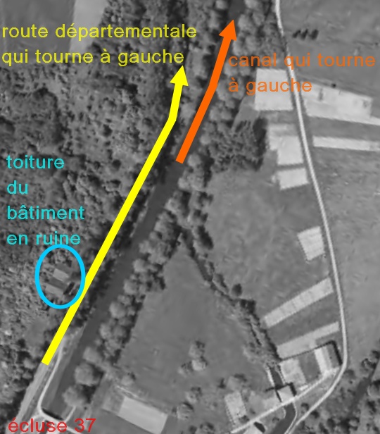 et je viens d'avoir confirmation de ce que je pensais par Fabienne D., éclusière des Vosges, qui précise que le bâtiment à gauche est l'ancienne plâtrière, qui daterait de 1914 et que les Allemands ont fait sauter en 1944.