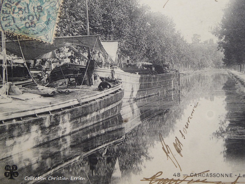 Je lance une bouteille à la mer avec cette jolie cp de 1905 . Cela parait difficile car il y a bien peu d'éléments de reconnaissance de ce bateau déjà en acier à cette époque sur le canal du Midi. Il n'a pas du y en avoir beaucoup. Je fais confiance à la sagacité des spécialistes du midi.....