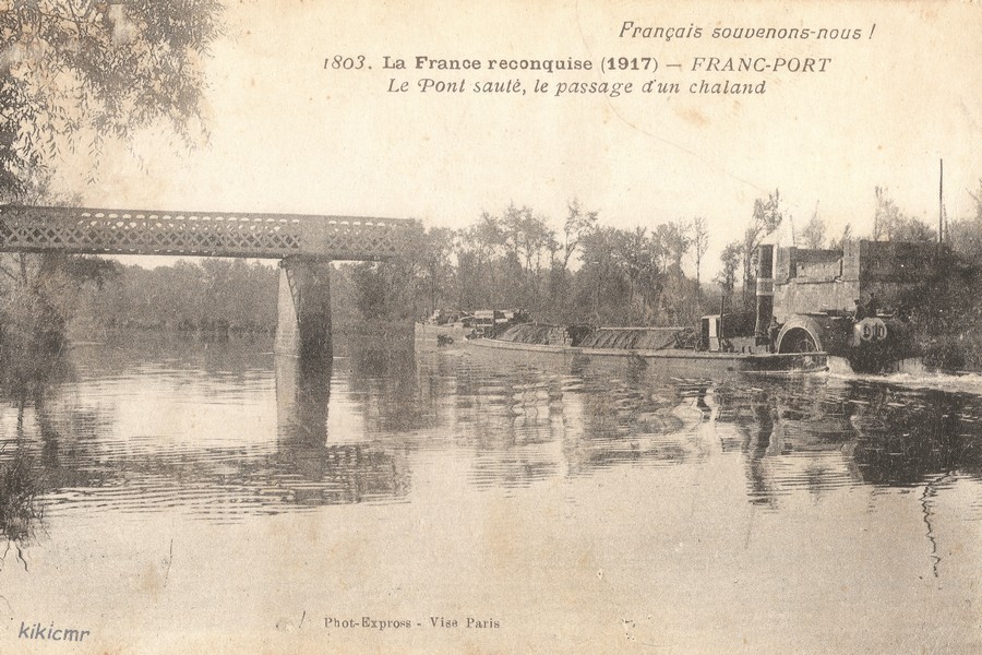 Franc-Port - Le pont sauté, le passage d'un chaland.