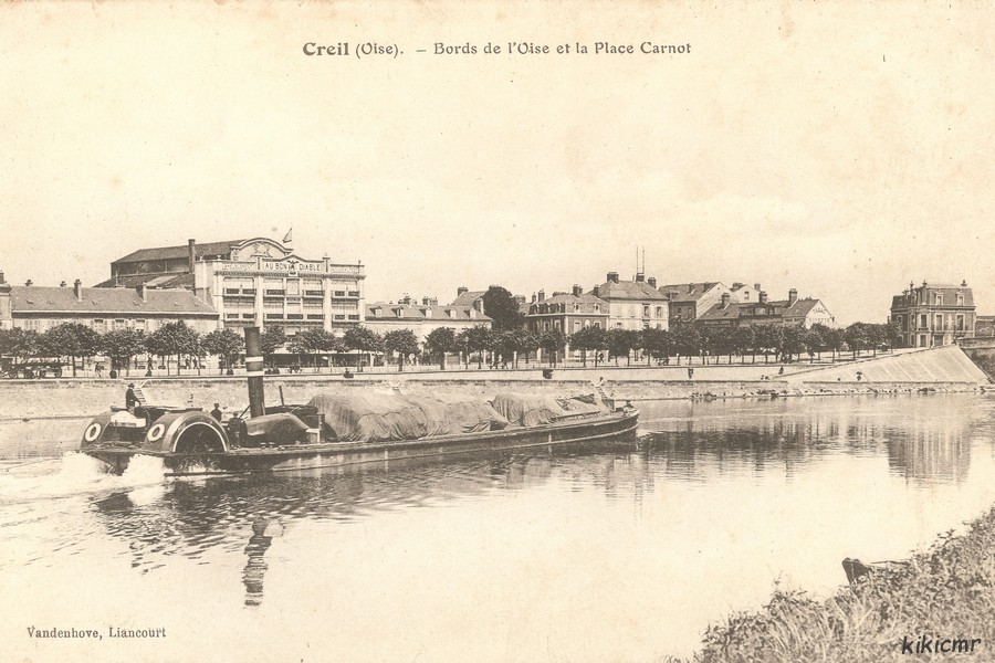 Creil (Oise) - Bords de l'Oise et la place Carnot (et le magasin d'ameublement Au Bon Diable)