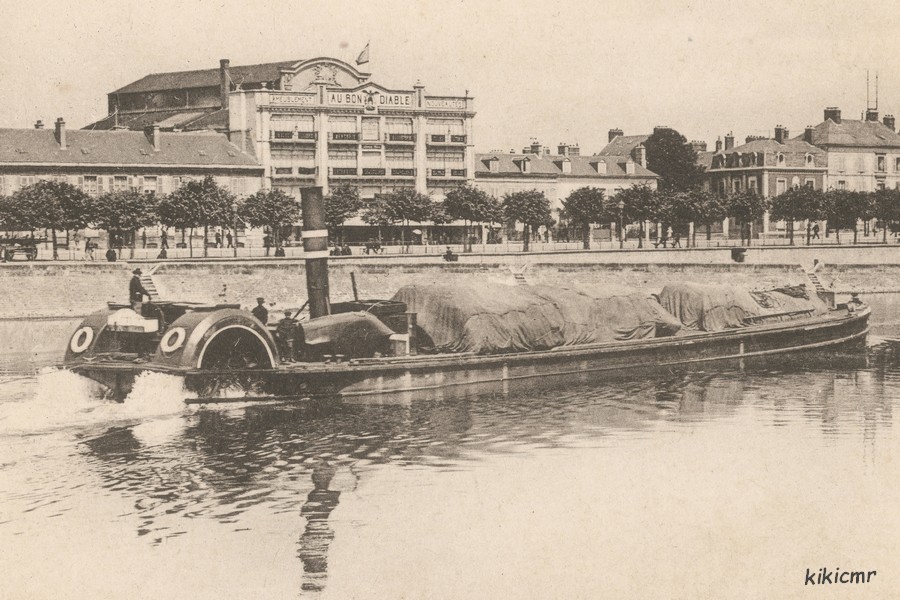 (non écrite) de l'Aisne au Franc-Port (commune de Choisy-au-Bac, 60), on peut voir un porteur à vapeur à roues à aubes :