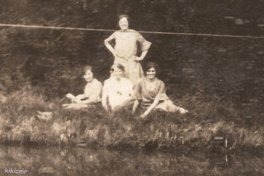 La photo a été décollée d'un album, une partie de la légende manuscrite au dos a été arrachée, et réécrite, mais de façon incomplète ; pour la localisation, on a seulement "Kanal im Wald", c'est-à-dire "canal dans la forêt", alors qu'à l'origine c'était plus complet, il y avait quelque chose attaché à -wald, c'était plus précis, du genre "dans la forêt de ...". Dommage. Par contre, la date est toujours là : 1er mai 1931. Remarquons qu'on a un mélange allemand français : "Kanal im Wald", en allemand, "1er mai" en français. Un petit côté alsacien-mosellan, quoi...